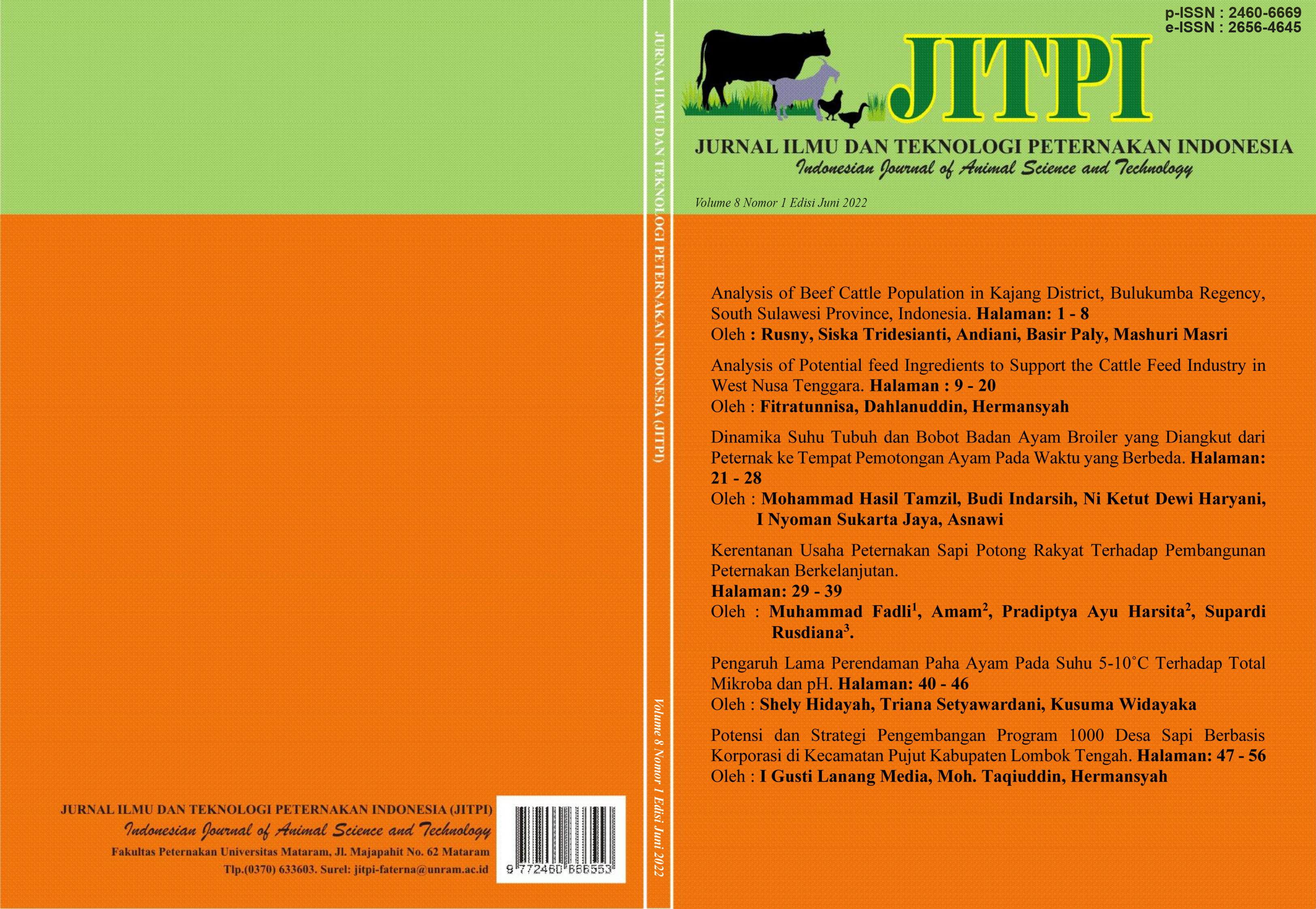 Vol. 8 No. 1 (2022): Jurnal Ilmu Dan Teknologi Peternakan Indonesia (JITPI) Indonesian Journal of Animal Science and Technology